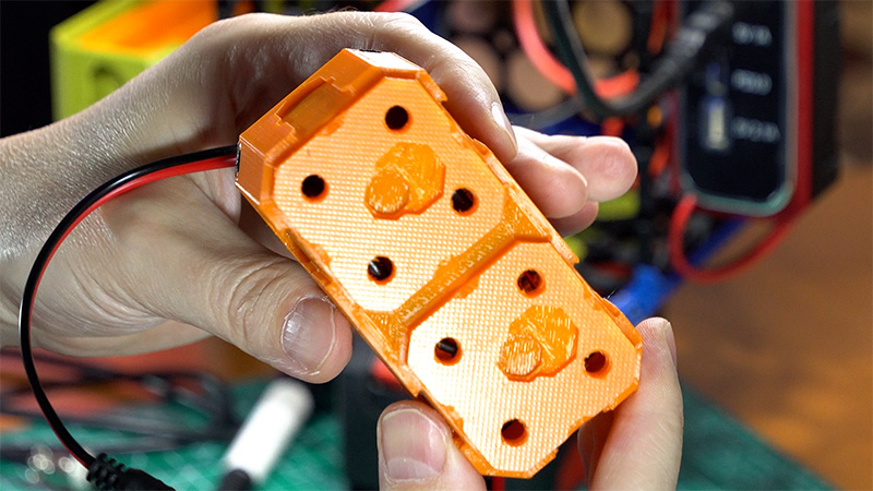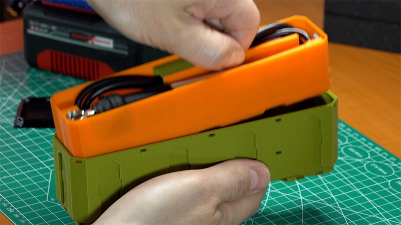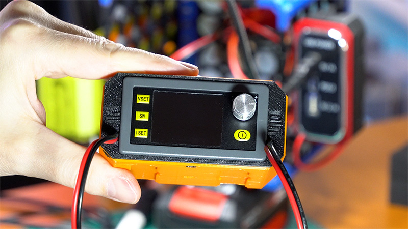 Maßgeschneidertes 2x1x1 Multiboard-Modul mit einem kompakten, einstellbaren Step-Up-Wandler, der eine Eingangsspannung von 18 V in eine Ausgangsspannung von bis zu 36 V umwandelt und sich für vielseitige Elektronik- und DIY-Projekte eignet. Das Modul verfügt über einen modifizierten 2×1 Drop-In Deckel für eine sichere Modulbefestigung, der mit Standard-Multiboard-Holding-Pins gesichert ist. Der Wandler ist in einem 2x1x1 Multibin-Gehäuse untergebracht, das über durchgestoßene Belüftungslöcher im Boden für eine verbesserte Kühlung verfügt. Alle Kabel sind nach oben verlegt, um eine bequeme Aufbewahrung in z.B. Schubladen zu ermöglichen.