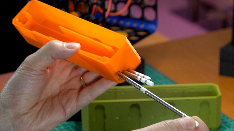 Maßgefertigter 1x4x1 Insert für die 4x1x1 CU – Topped Multipoint Rail – Multibin Shell, der eine vollständige Aufbewahrungslösung für das komplette T12-907 Lötkolben-Set bietet. Dieser präzise konstruierte Insert nimmt den T12-907 Lötkolben mit angeschlossenem Kabel, bis zu 5 Lötspitzen, die Lötspitzen-Hülse und einen steckbaren Lötkolbenhalter auf – alles übersichtlich organisiert in einem kompakten Modul. Der Insert maximiert die Platzausnutzung und hält alle wichtigen Löt-Komponenten leicht zugänglich und sicher verstaut, wodurch er sich ideal als Ergänzung eignet, die über die Multipoint Rail an mobile Lötstationen montiert werden kann.
